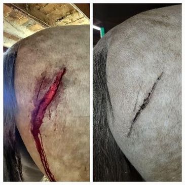 Photos from one of our customers. Horse wound healed within 4 weeks using the Vetrolaser.